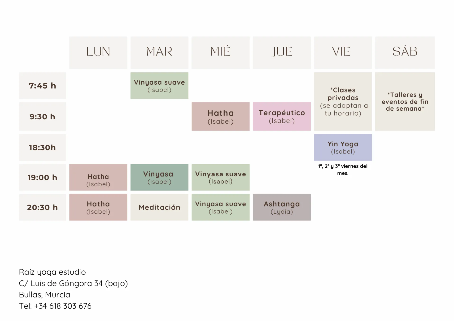 María José Gea JiménezTrustindex verifica que la fuente original de la reseña sea Google. Me encanta el momento de llegar al estudio, sentir ese espacio como casa donde poder soltar y respirar profundo de la mano de Isabel. Sus clases son siempre reconfortantes ✨️ Se nota el cariño y el esfuerzo que hay detrás de cada práctica. Sin duda es un imprescindible para sentirme mejor cada semana. marieta garciaTrustindex verifica que la fuente original de la reseña sea Google. Altamente recomendable. Un lugar donde te sentirás querido y respetado desde el primer momento, te sientes cómodo en cada una de las clases. Isa te hace sentir en casa y en cada una de sus clases pone un cariño que se transmite desde el minuto cero. Y también está Lydia que, si Isa es luz, tenía que elegir a otro alma como ella y ese alma es Lydia, ambas hacen que el yoga sea mágico en casa una de sus variantes 💜. Namaste💜💜💜💜💜 Francisco OrtegaTrustindex verifica que la fuente original de la reseña sea Google. Altamente recomendables tanto las clases de yoga como las de meditación. Puedes avanzar a tu propio ritmo, sin importar tu nivel inicial. Isabel es siempre muy atenta y se asegura de que cada sesión sea una experiencia enriquecedora. ANA YOLANDA GIMENEZ FERNANDEZTrustindex verifica que la fuente original de la reseña sea Google. Una profesora increíblemente increíble, capaz de hacerte sentir feliz y mejor, no solo en el plano físico sino también psíquico y mental. Un auténtico lujo compartir ratitos con ella❤️ Klaudia KTrustindex verifica que la fuente original de la reseña sea Google. Un estudio de yoga dirigido por una profesora increíblemente profesional y agradable. Desde el primer momento, me sentí bienvenido en un ambiente acogedor y sereno. Su capacidad para explicar las posturas y su enfoque personalizado hacen que cada clase sea accesible y enriquecedora. La variedad de estilos, desde Hatha hasta Vinyasa, junto con elementos de meditación, transforma cada sesión en una experiencia única. Su actitud positiva inspira a todos a dar lo mejor de sí mismos. Recomiendo este estudio a cualquiera que busque mejorar su bienestar físico y mental. ¡Una experiencia que no te puedes perder! juani caballero sanchezTrustindex verifica que la fuente original de la reseña sea Google. Totalmente recomendable..un lugar para encontrar tu equilibrio físico y mental..por supuesto los méritos son de Isabel una profesional de los pies a la cabeza...